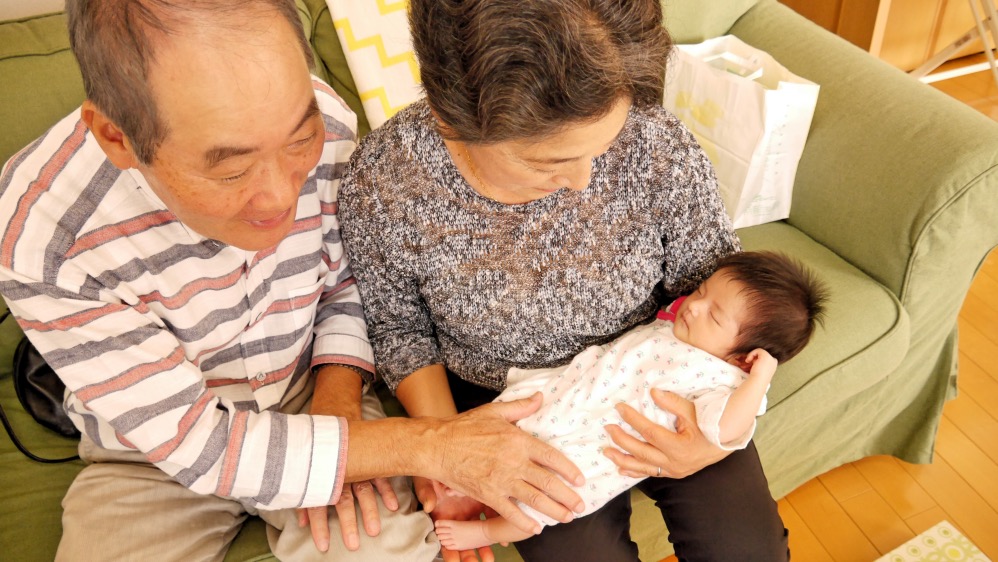 めいさんが生まれて3週間後、じぃじとばぁばにご対面したときの懐かしの写真。