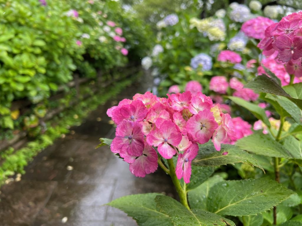 6/3(土)小雨の中、下田公園に紫陽花を見に行きました。色とりどりの紫陽花がとても綺麗でした。