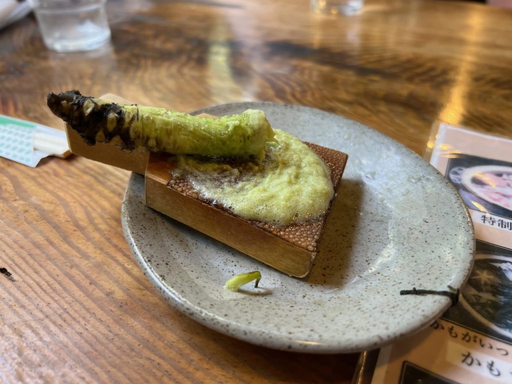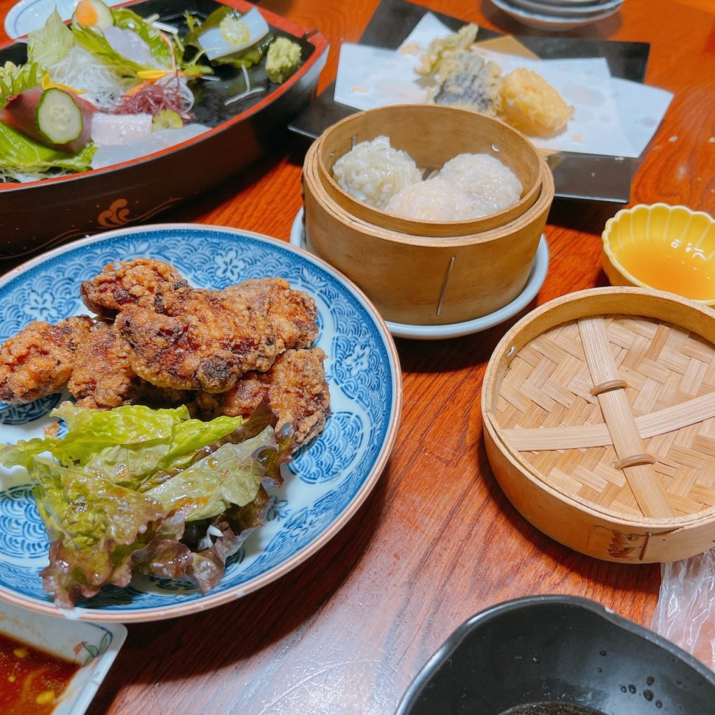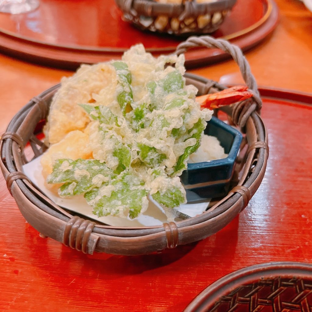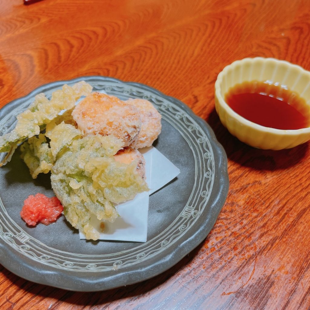 天ぷら。サクサクしていて美味しかったです。地場野菜の明日葉の天ぷらもありました。