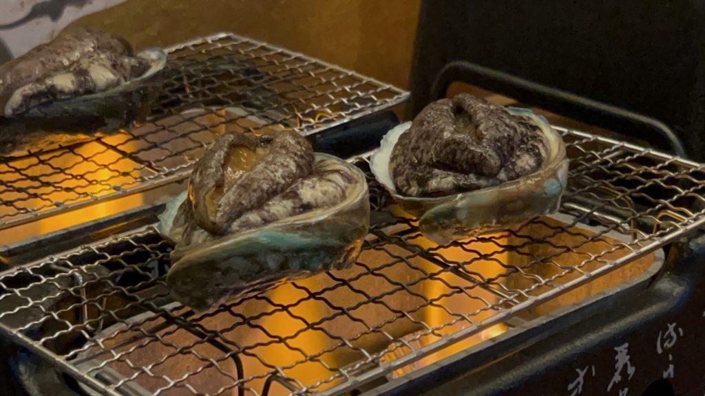 栄子さんが楽しみにしていた鮑のおどり焼き。