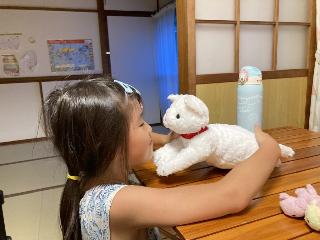 お誕生日に中西家からプレゼントしてもらった絵本がお気に入りで何度も読んでいます。なので、ドアの向こう側にどんな海の動物がいるかめいさんは全部覚えています。