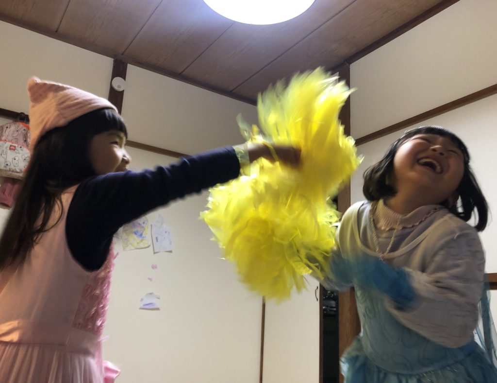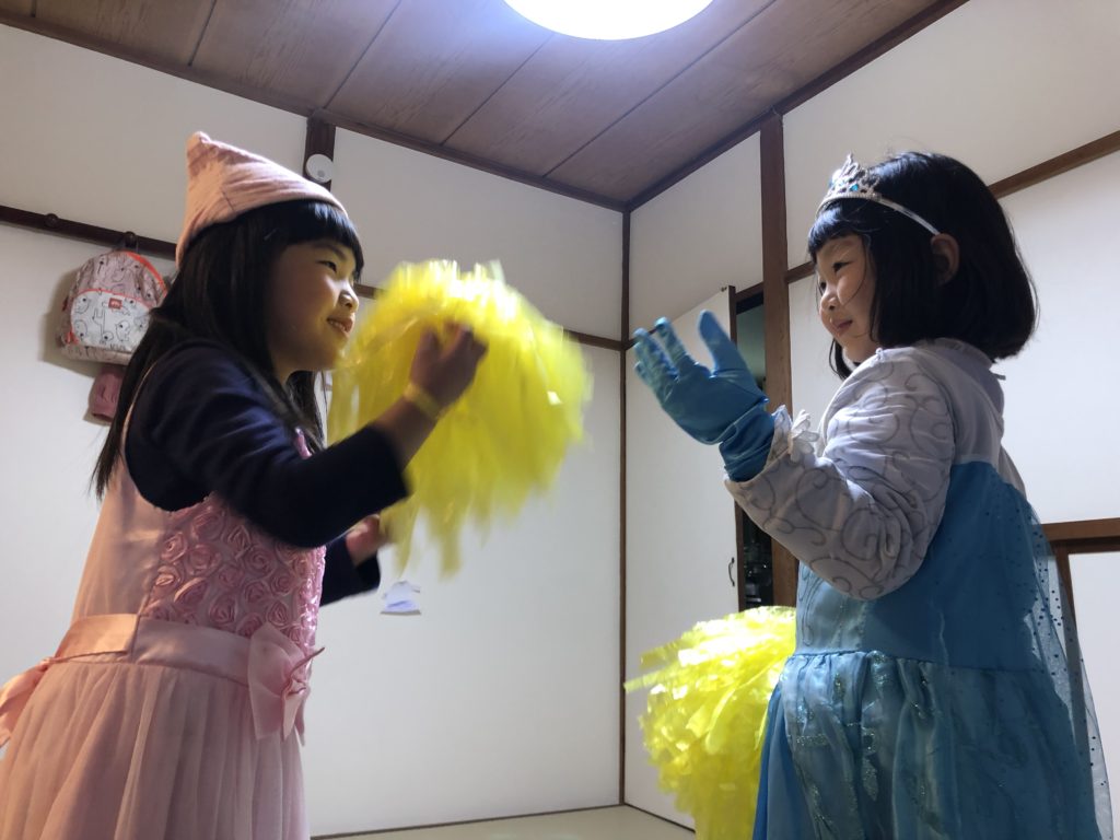 昨日、幼稚園で仲良しのお友達がおうちに遊びに来てくれました。可愛いお洋服に着替えて二人できゃっきゃしたり、プレゼントしていただいた”こえだちゃん”で遊んだり、終始楽しそうにしていました(^^)