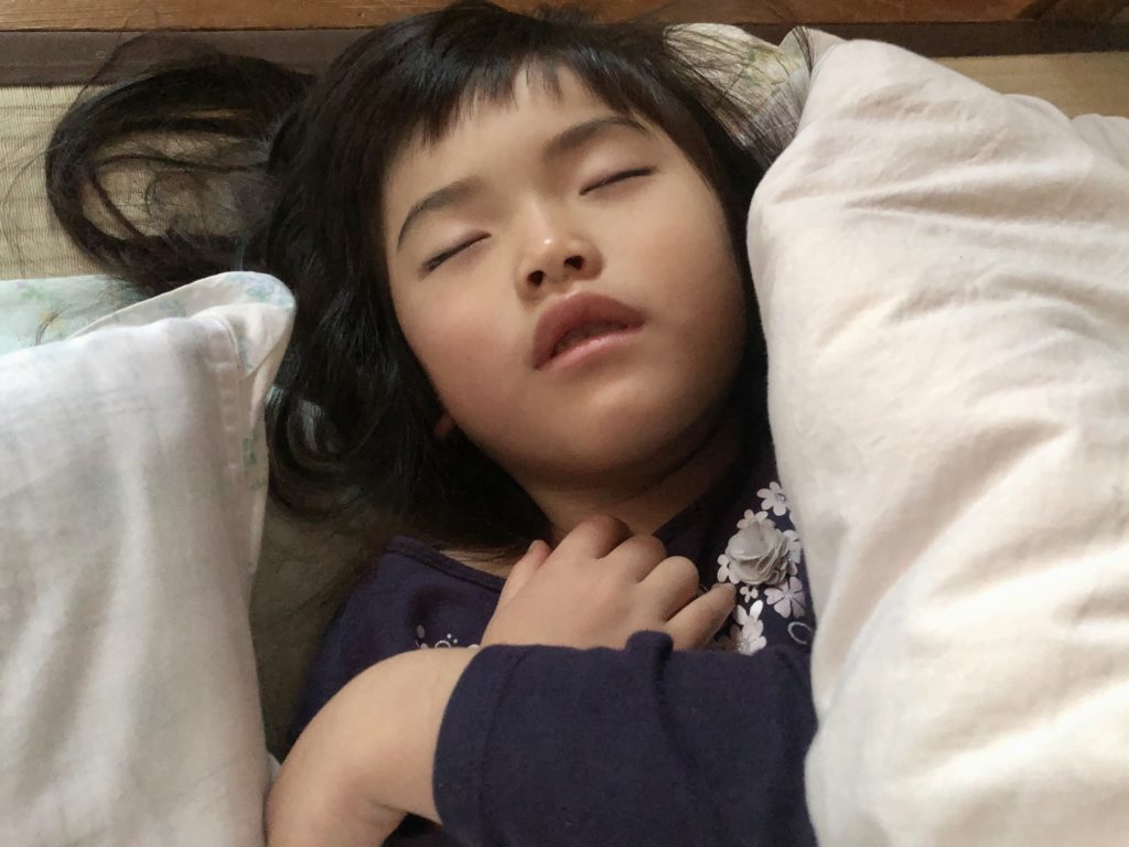 今日はめいさんの寝顔ショットです♪寝るときお布団を3枚敷いているのですが、めいさんはいつもママのお布団に入ってくるので、毎日お布団が1枚余っています笑。