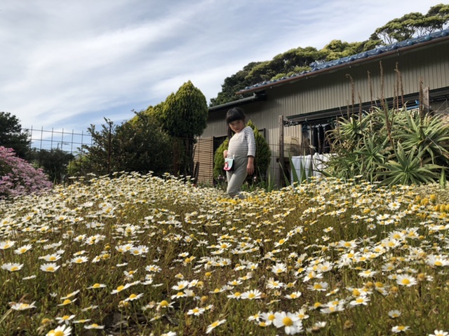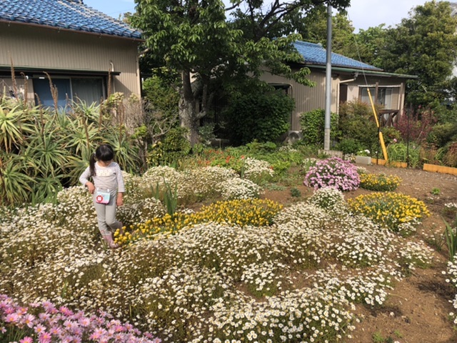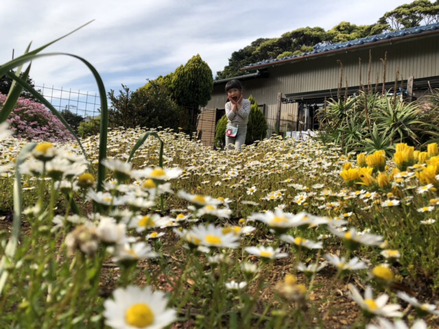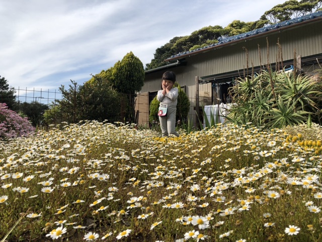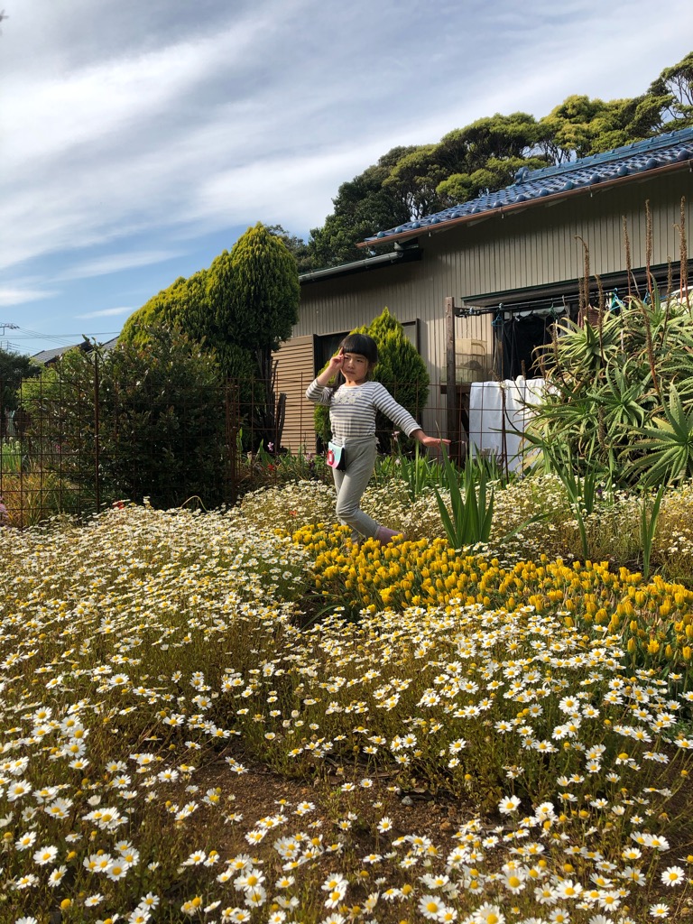 大家さんのお母さんに勧められ、お花畑で写真撮影。色々ポーズをとってくれます。