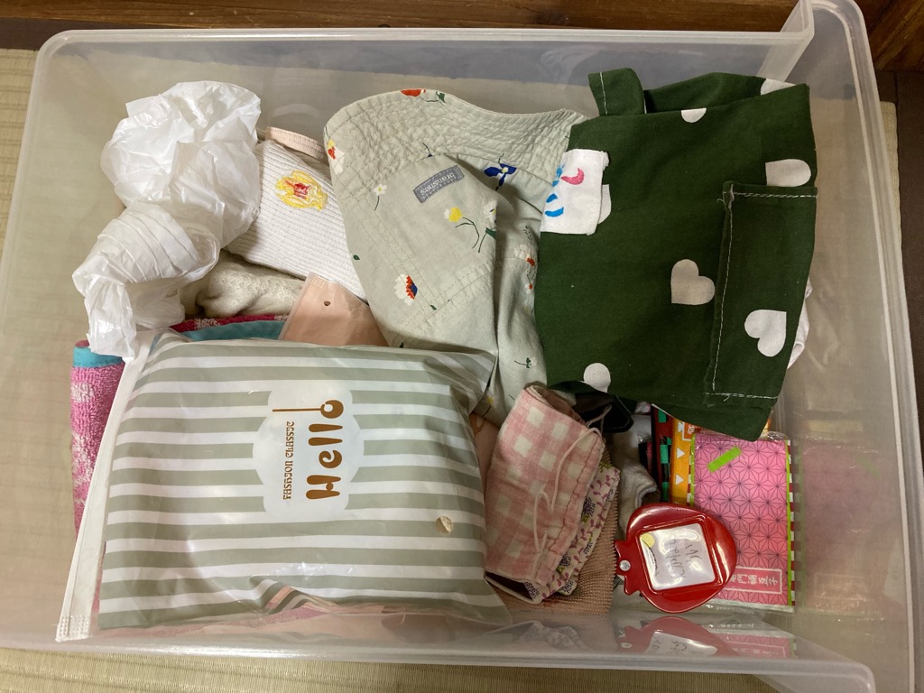 毎朝幼稚園に行くお支度が終わった後出発の時間までは自由時間にしていて、昨日もお支度が終わった後、「出発まで好きなことしていいよ。」とめいさんに言ったのですが、「めいちゃん、お仕事があるから。こうちゃんとママみたいに。遊んでいる暇はないの。お片付けしないと。」と大人っぽい口調で話し、突然自分のクローゼットのお片付けをし始めました。几帳面にティッシュはマスクはマスクというように綺麗に仕分けていました。