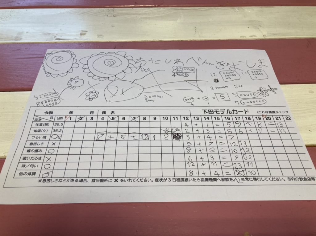 お勉強に夢中です。数字に興味しんしん。足し算の練習をしています。