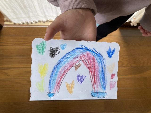 時々幼稚園のお友達とお手紙交換をしています。昨日はこんな可愛いお手紙を書いていました。