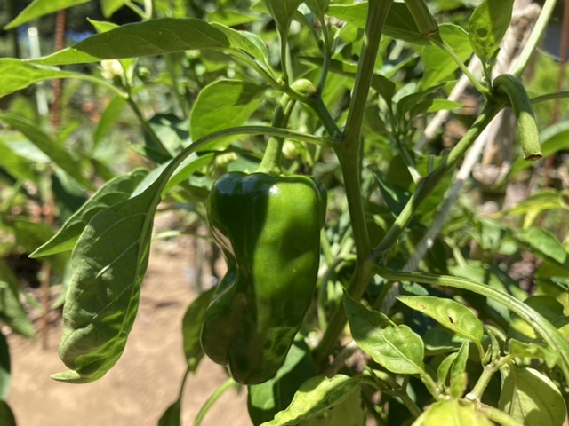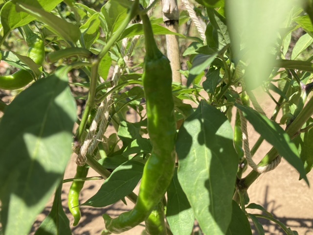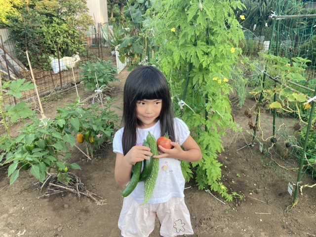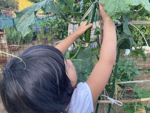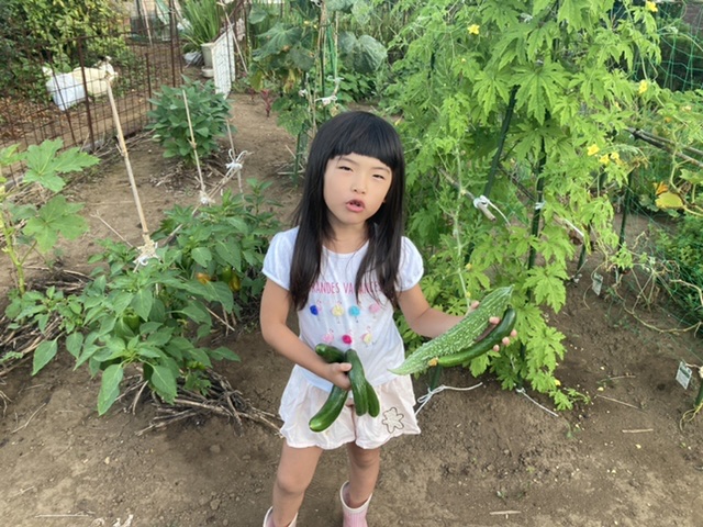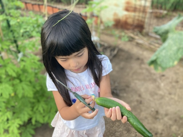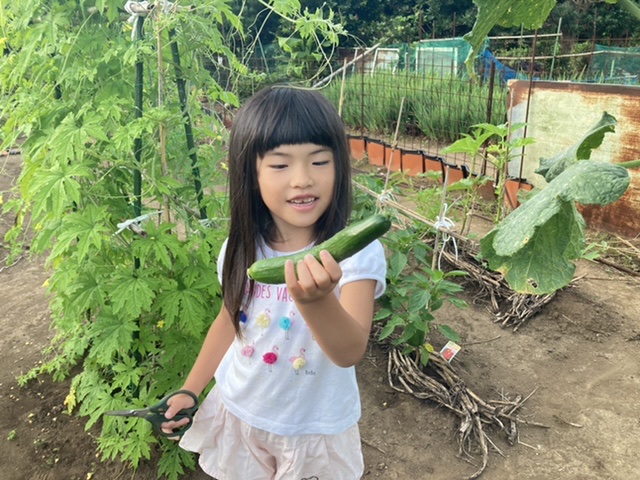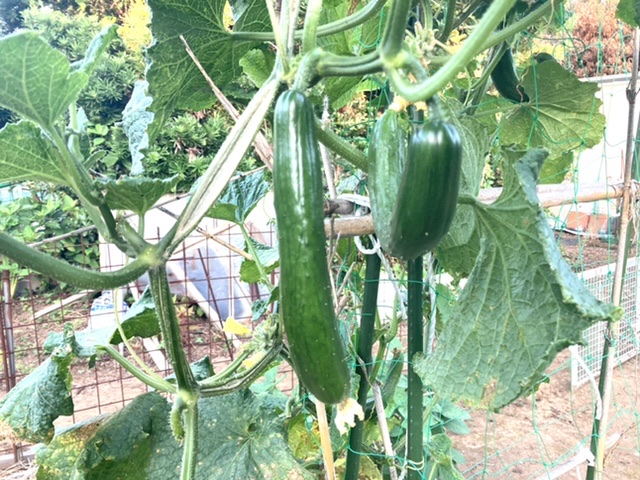 少し高いところになっているきゅうり。頑張って収穫しました。