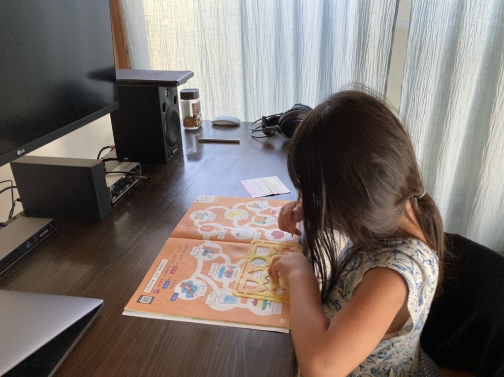 夏休み中、朝1つだけお勉強をすることにしています。この日はしまじろうの小学校準備プログラムを勉強しました。