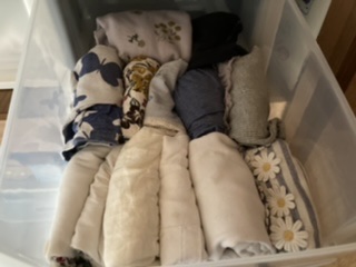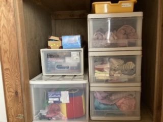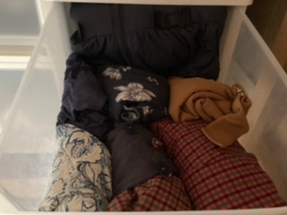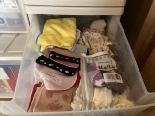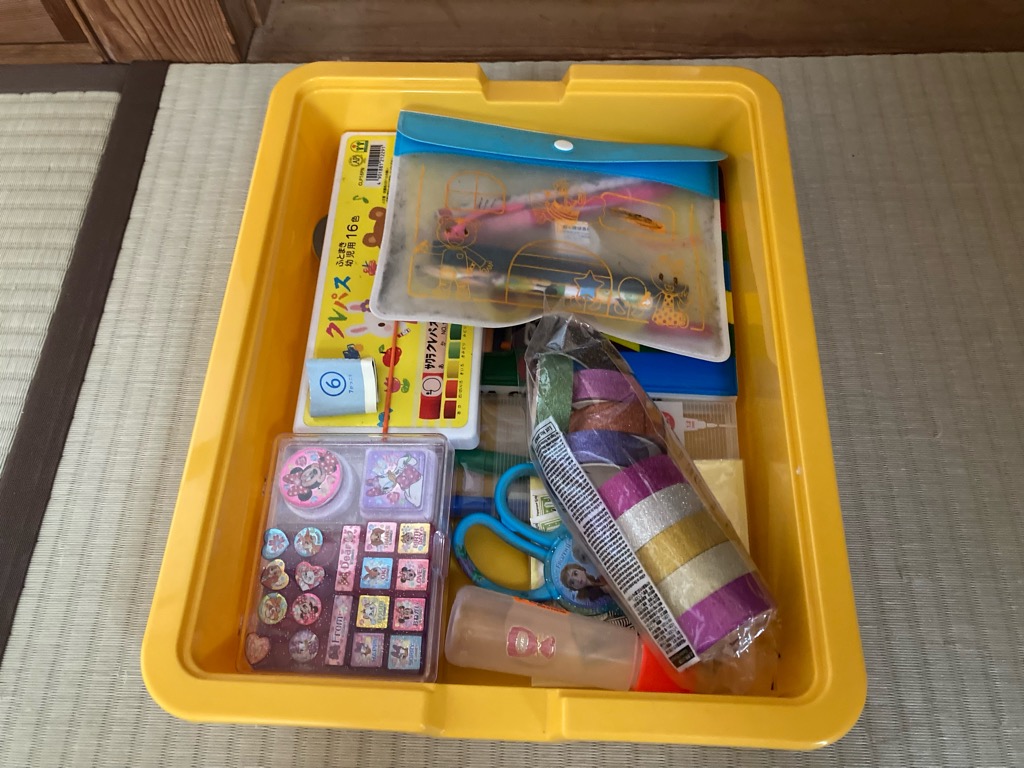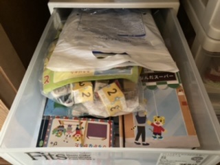 ここ(ハンカチ、靴下、下着など)はめいさんが自分でたたんで、自分で箱の中に整頓しながら入れました。結構几帳面です。