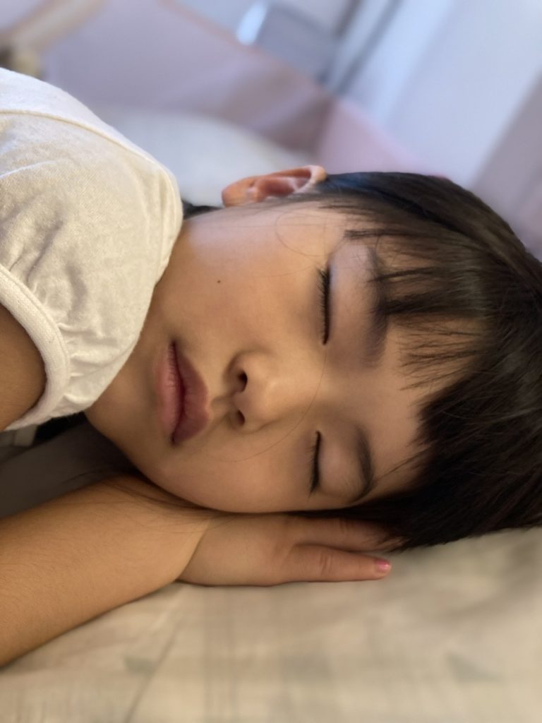 めいさんの寝顔。すやすや気持ちよさそうに寝ています。