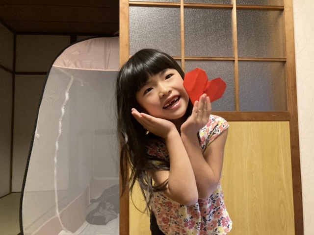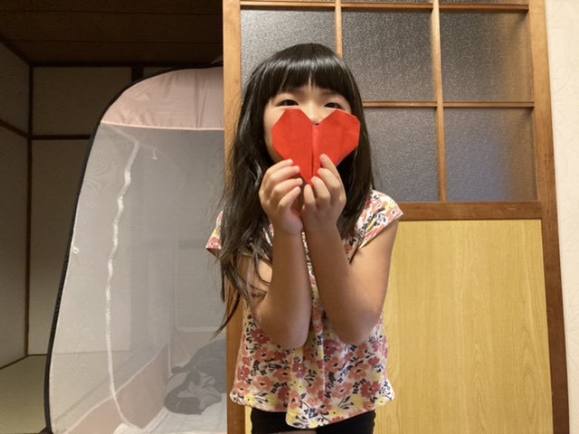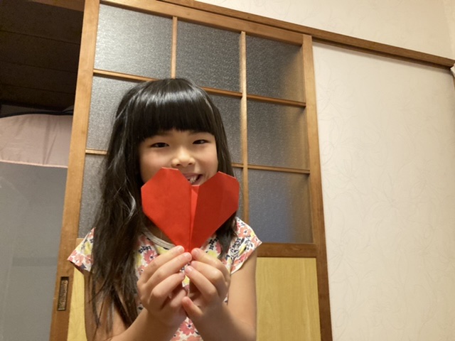 YouTubeでハートの作り方を検索をして自分ひとりで折りました。