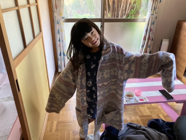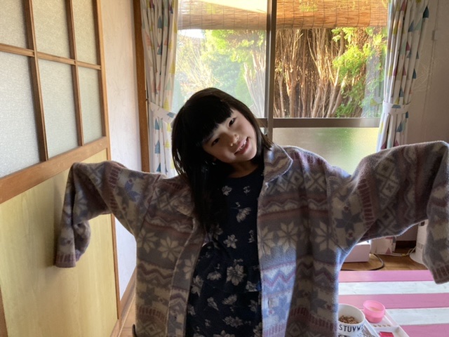 朝寒くなってきたので、こうすけくんの暖かいお洋服を着てみました。ぶかぶかの感じが可愛い。お身体お気をつけてお過ごしください。