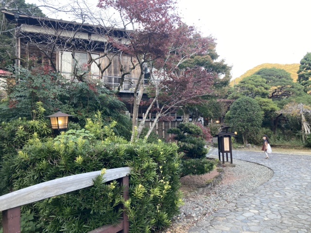 11/20(土)稲取ふれあいの森公園ピクニックの後、めいさんたってのご希望で近くにある金谷旅館の日帰り温泉に行ってきました。お着替え袋を背中に背負っているのはめいさんです↓