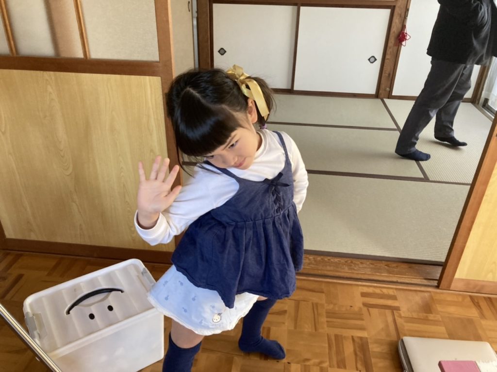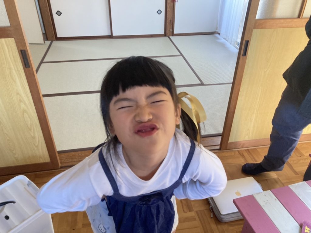 今日からめいさんは冬休みです。「めいさんの棚やおもちゃ箱をお掃除しようね。」と言ったら「今日はいい日だから何もしませーん♪」と言っています苦笑
