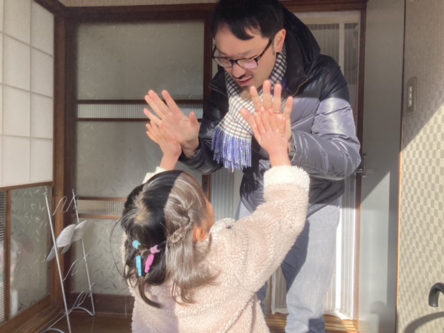 こうすけくんと「じゃんけんぽん・あっちむいてほい」対決をしました。