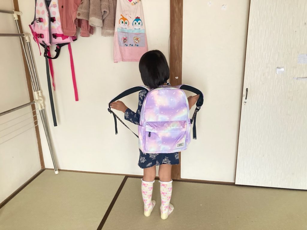 翌日学校にも新しいリュックを背負ってるんるんで投稿しました。(10月中旬まで熱中症対策でリュックで通っていました。今はランドセルを背負っています。)