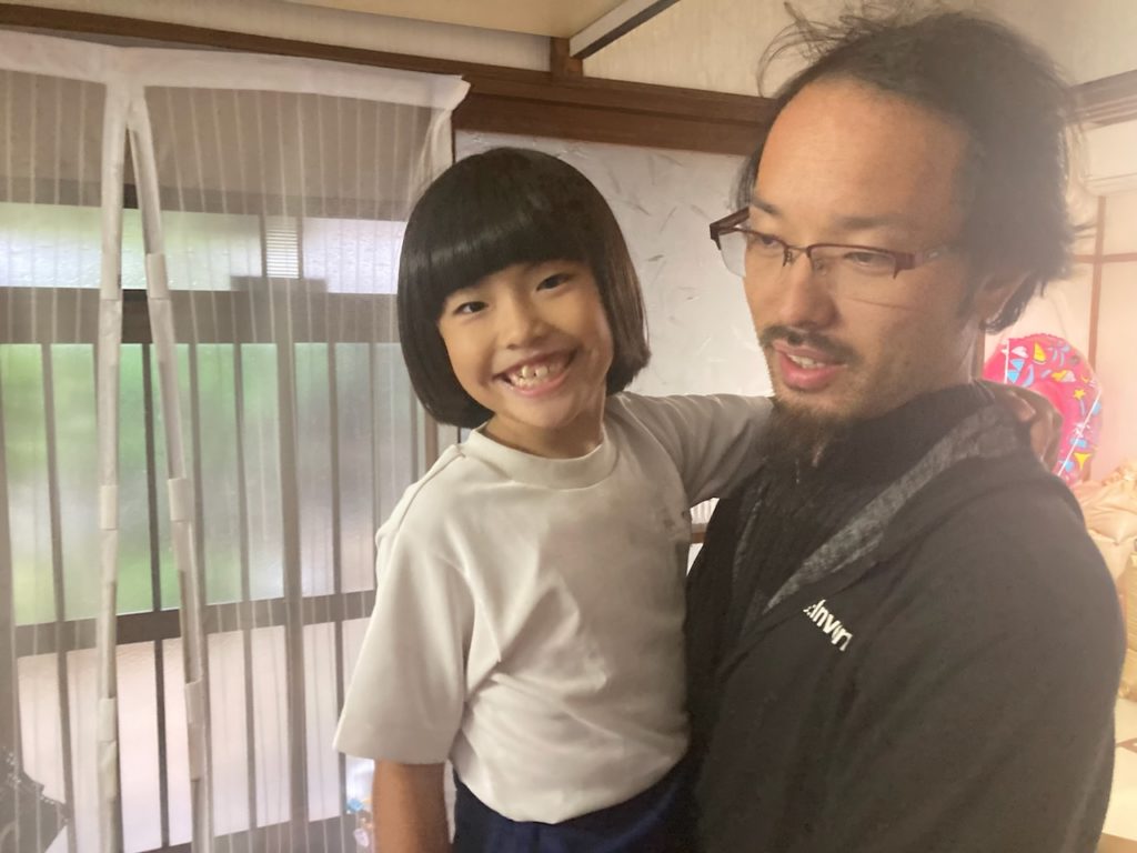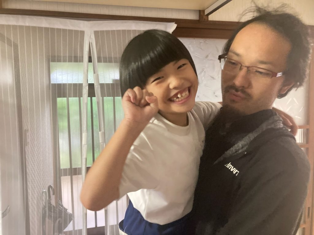 小学校一年生になった今もめいさんは抱っこをしてもらうのが大好きです。こうちゃんに抱っこをおねだり。嬉しそうに抱っこしてもらっています。