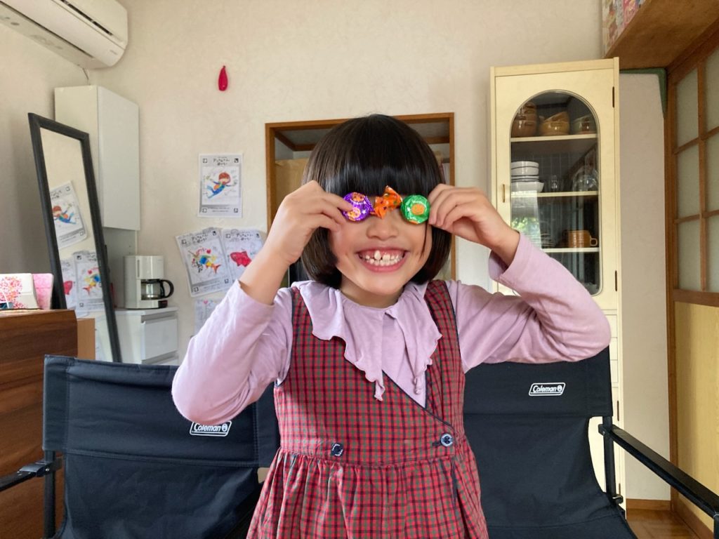 小学校から帰ってくるとテーブルの上に置いていた可愛らしい袋をすぐさま発見して、テンションが上がっていました。
