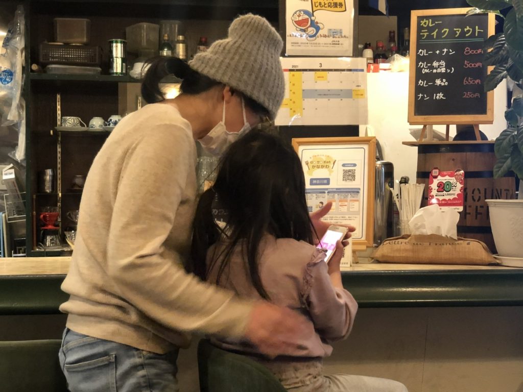 バーコードをかざしてPayPayで払うのはめいさんの仕事です。