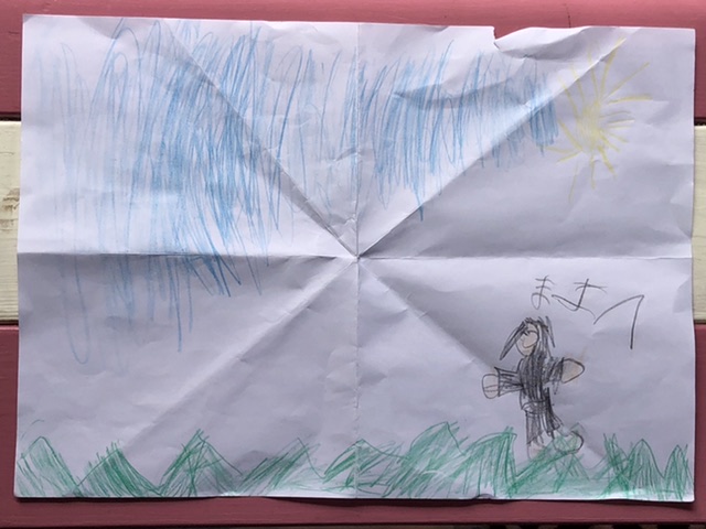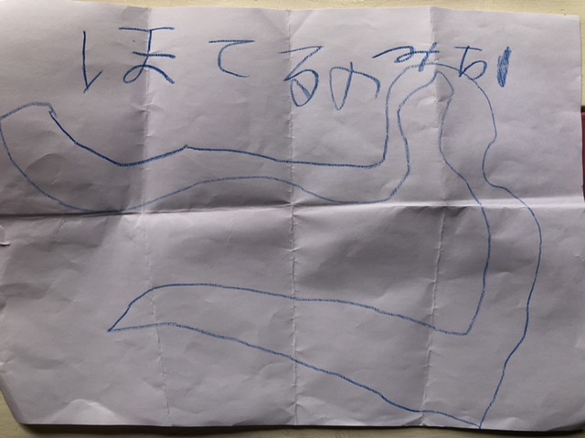 めいさんが「これを見ながらホテルまで運転してね。」と、宿泊するホテルまでの地図を書いてくれました。絵は「地球」だそうです。(Googleearthというアプリを時々使っている影響だと思われます。)