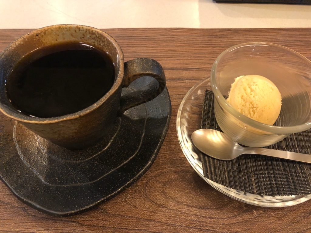食後にコーヒーと自家製アイスをいただきました。