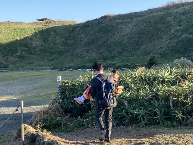 家の前ので。これから爪木崎に行くところです。
