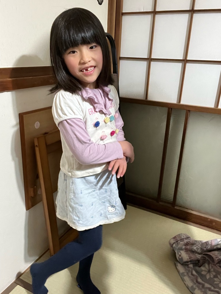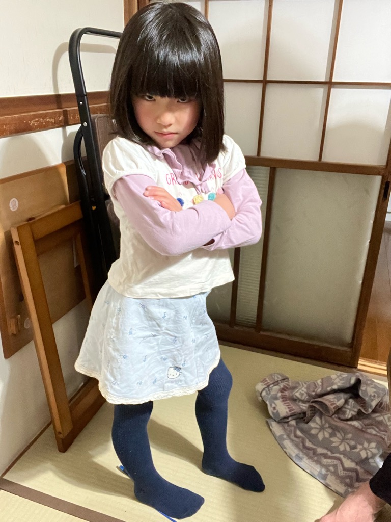幼稚園に着て行くお洋服は、毎日めいさんが自分でコーディネートしています。昨日のめいさんのファッション。ポーズをばっちり決めています。